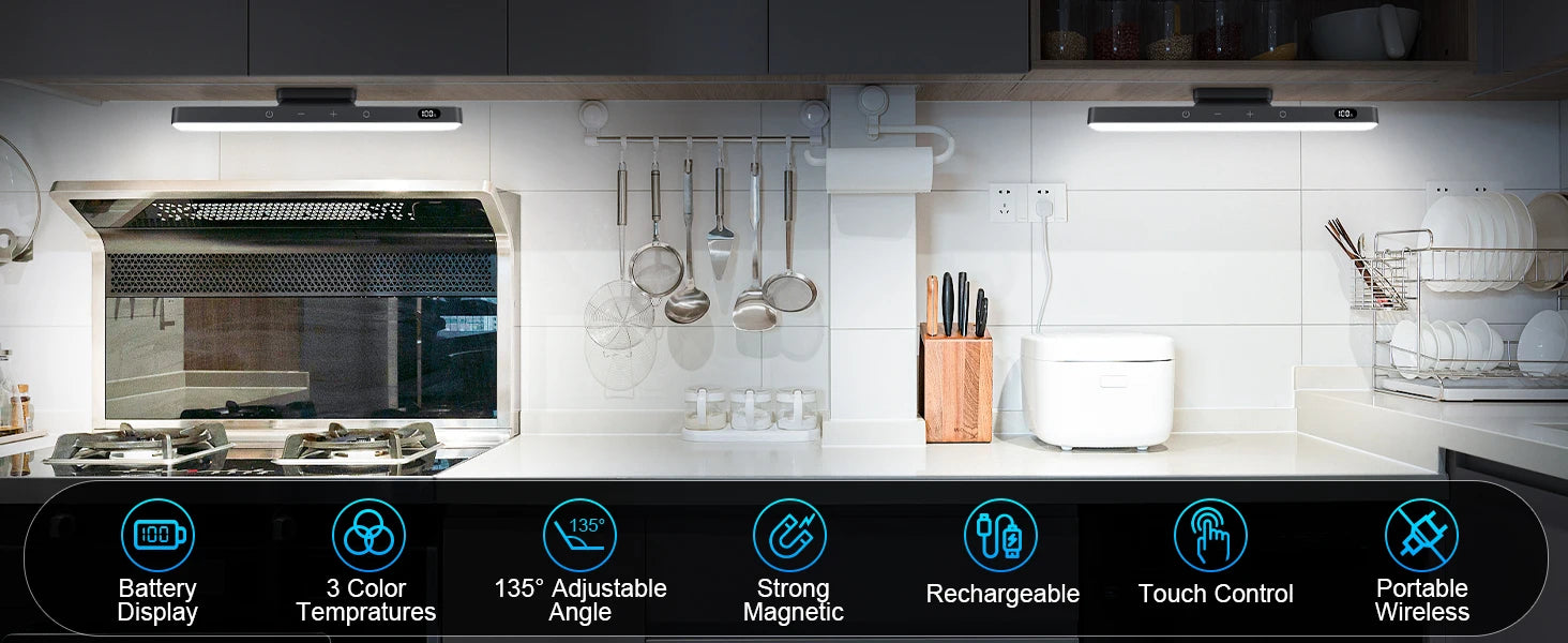 • Simple Installation & Portable: Attach the light bar easily with the included magnetic mounts and adhesive backing. It’s touch-controlled for easy use and portable for versatile placement—whether in your kitchen, closet, desk, or bedside.