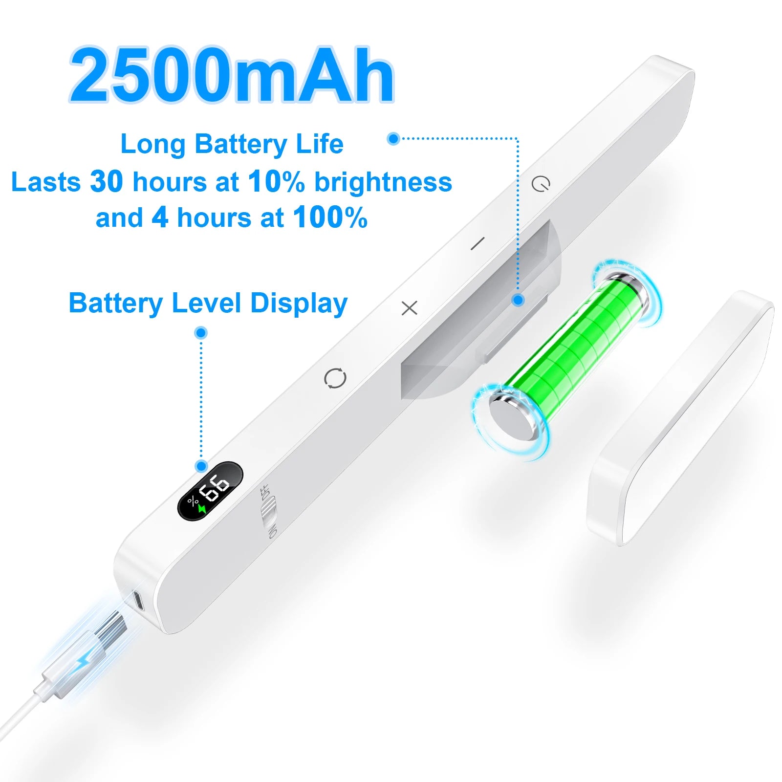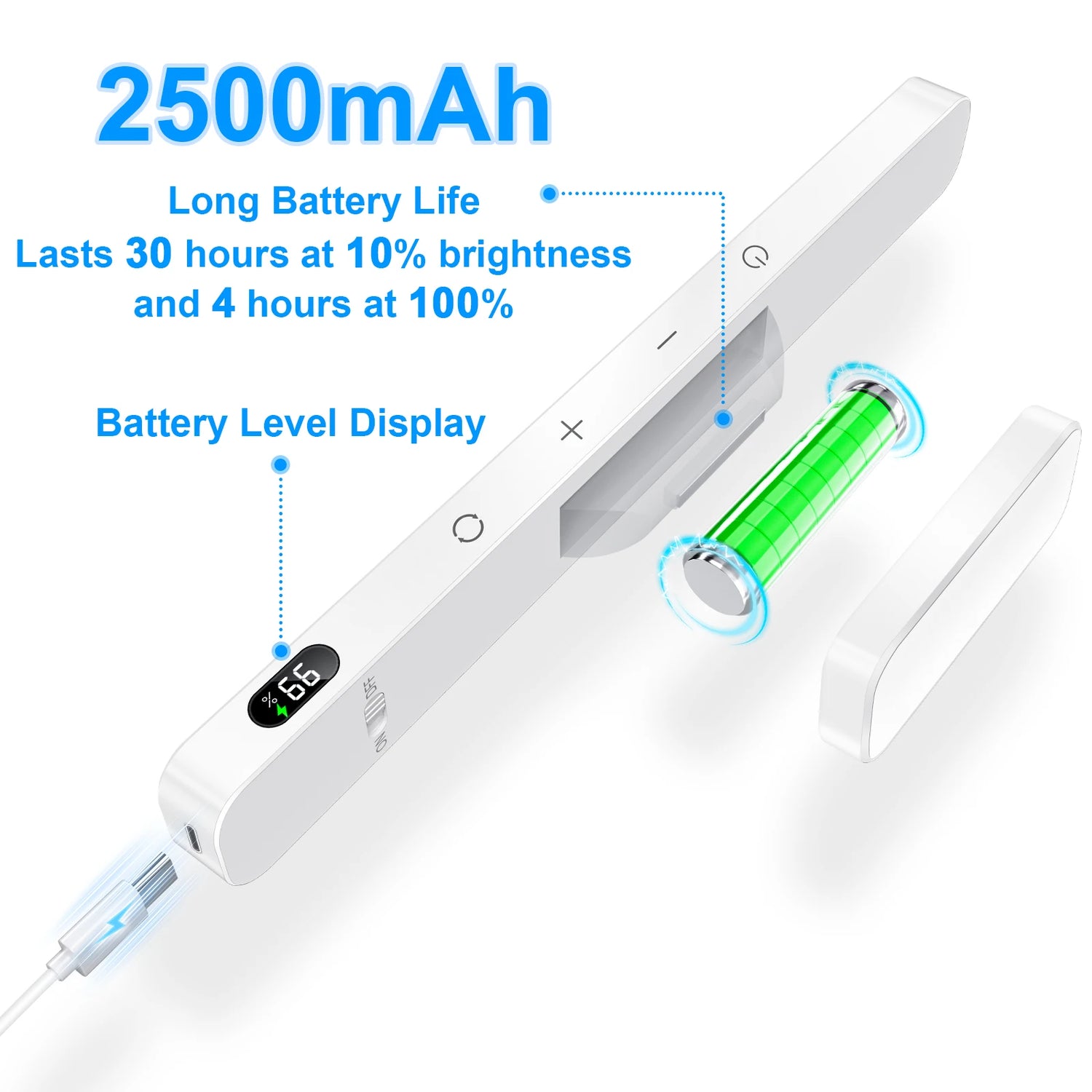 • Rechargeable Battery with Battery Level Display: Keep track of power with the built-in display that shows the exact battery percentage. The 2500mAh rechargeable battery ensures quick charging and long-lasting use.